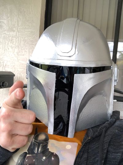 So, in early January I started assembling the materials needed: a Mandalorian helmet construction pattern, sheets of EVA foam, cutting mat, x-acto blade, gLuke, spray paint… and patience!